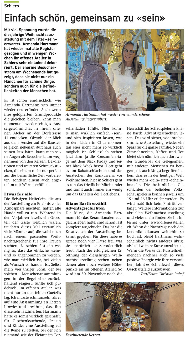 Offenes atelier am Sonntag 30. November von 13:30-18 Uhr mit Adventslesung mit Eline Barth, Lesungen finden um 15 Uhr & 16 Uhr statt.